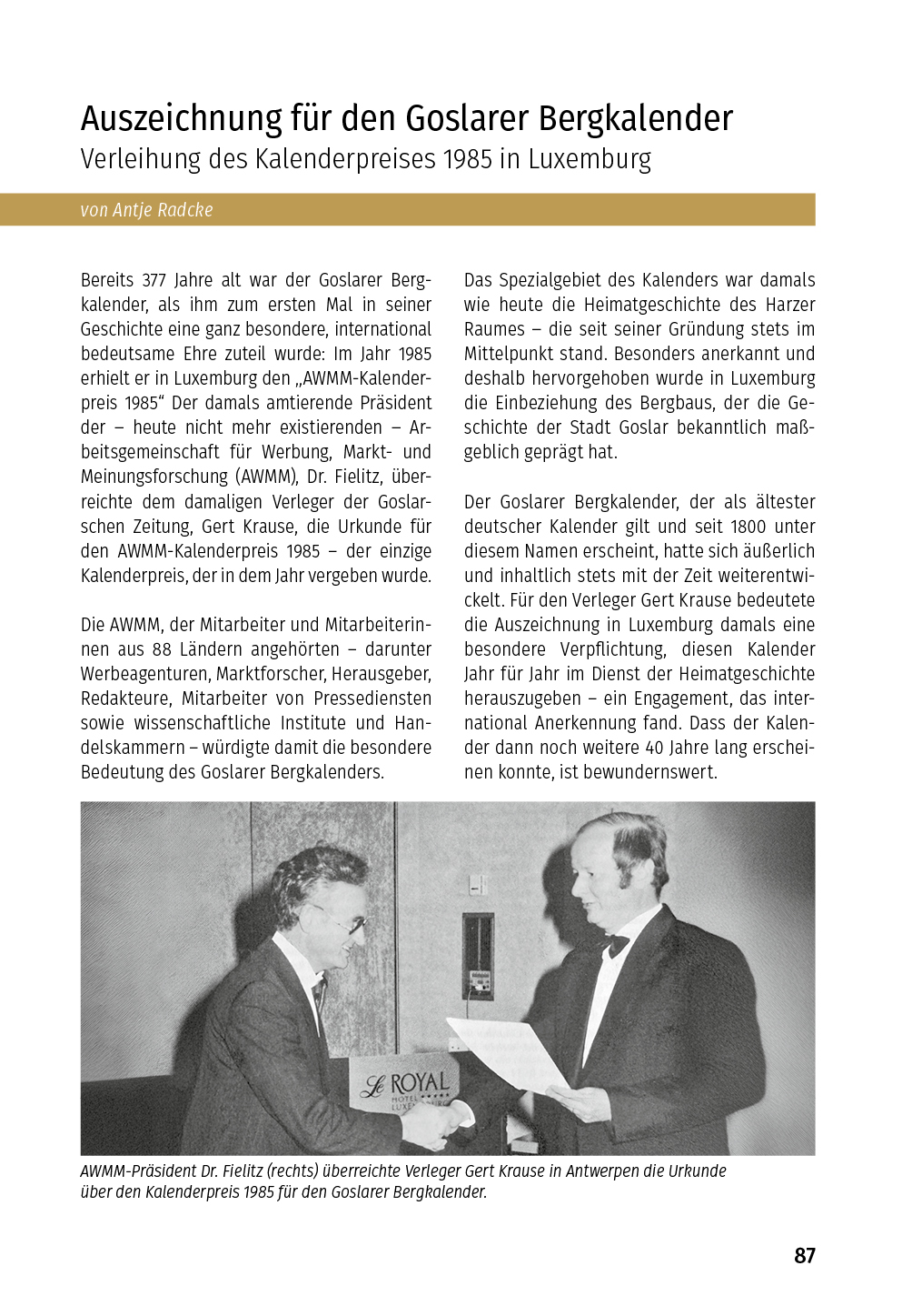 Für nur 15,90 € pro Exemplar ist der GOSLARER BERGKALENDER 2026ab sofort im lokalen Handel, in der GZ-Geschäftsstelle Goslar und online im GZ-Shop erhältlich.